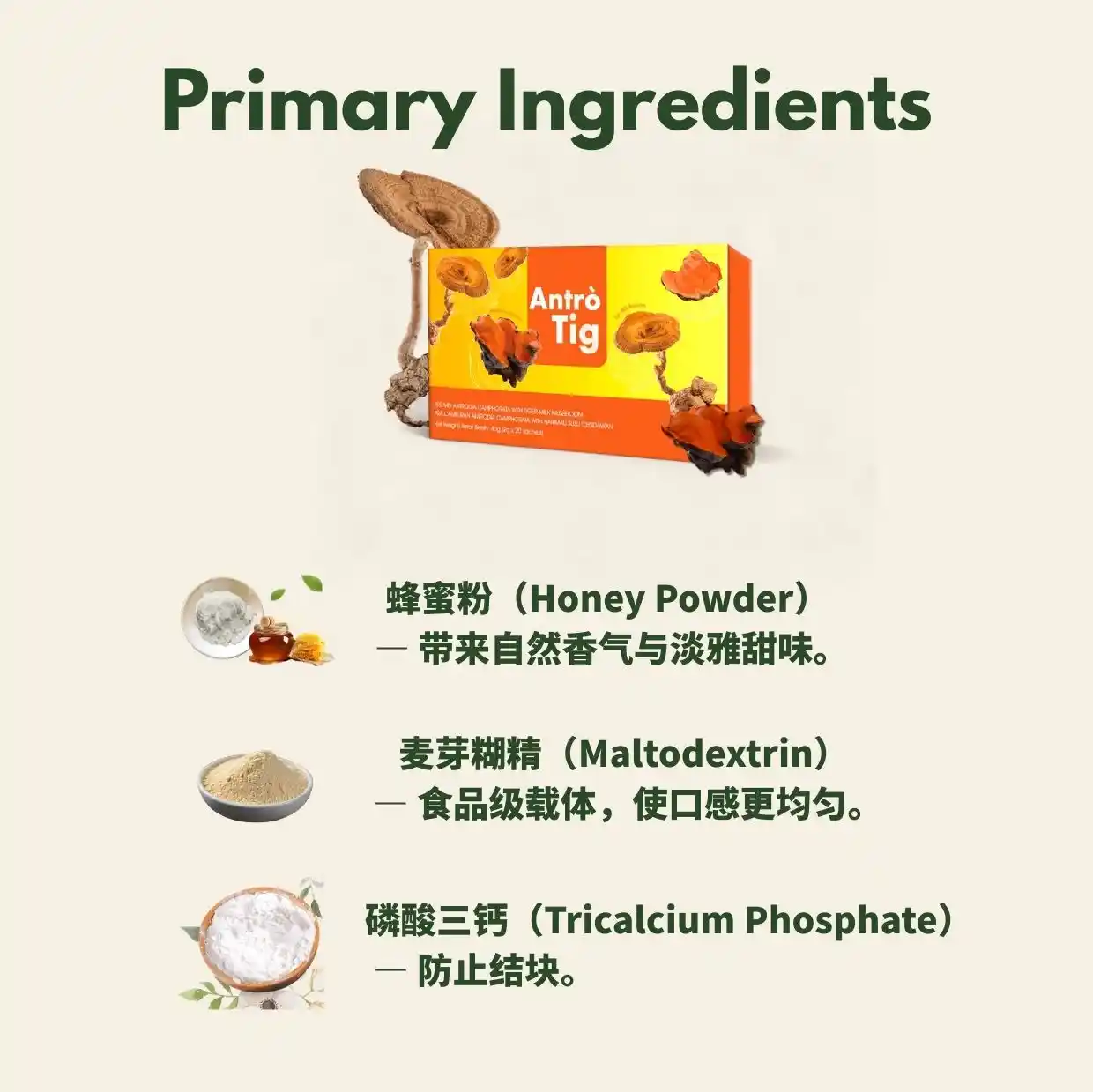 采用 台湾牛樟芝(Antrodia Camphorata)与虎乳芝(Tiger Milk Mushroom)双真菌配方,结合珍贵天然真菌营养,帮助增强免疫系统、支持呼吸健康并调理身体机能,让身体恢复自然平衡与活力 ✨