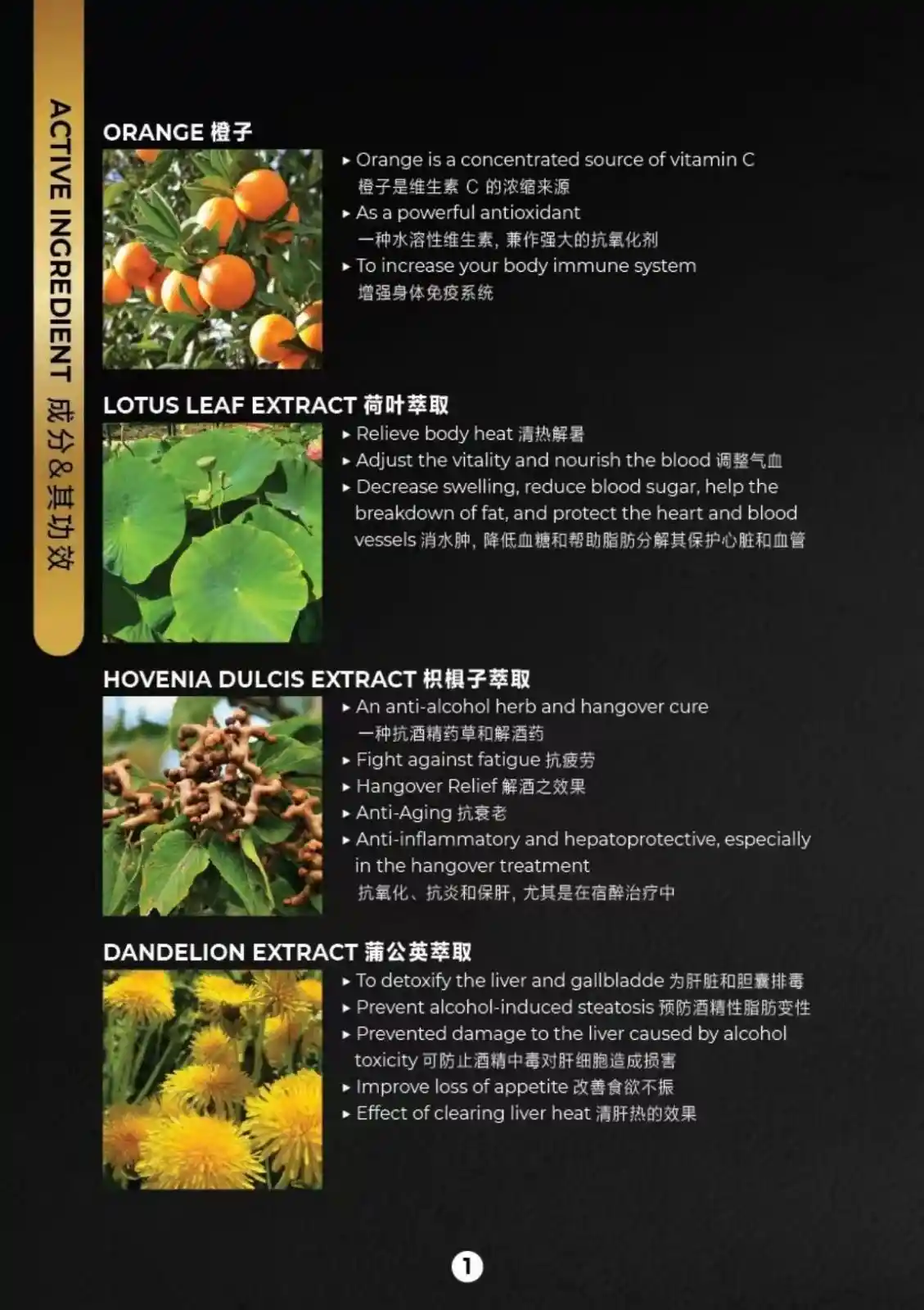 采用 天然植物草本配方,结合橙子提取物、枳椇子、蒲公英及水飞蓟等成分,帮助保护肝脏、促进代谢并缓解饮酒后的不适,让身体恢复清爽状态 ✨