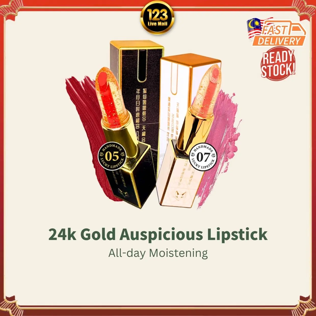 ✨24K Gold Auspicious Lipstick | 𝟐𝟒𝐊独家狐仙开运口红✨