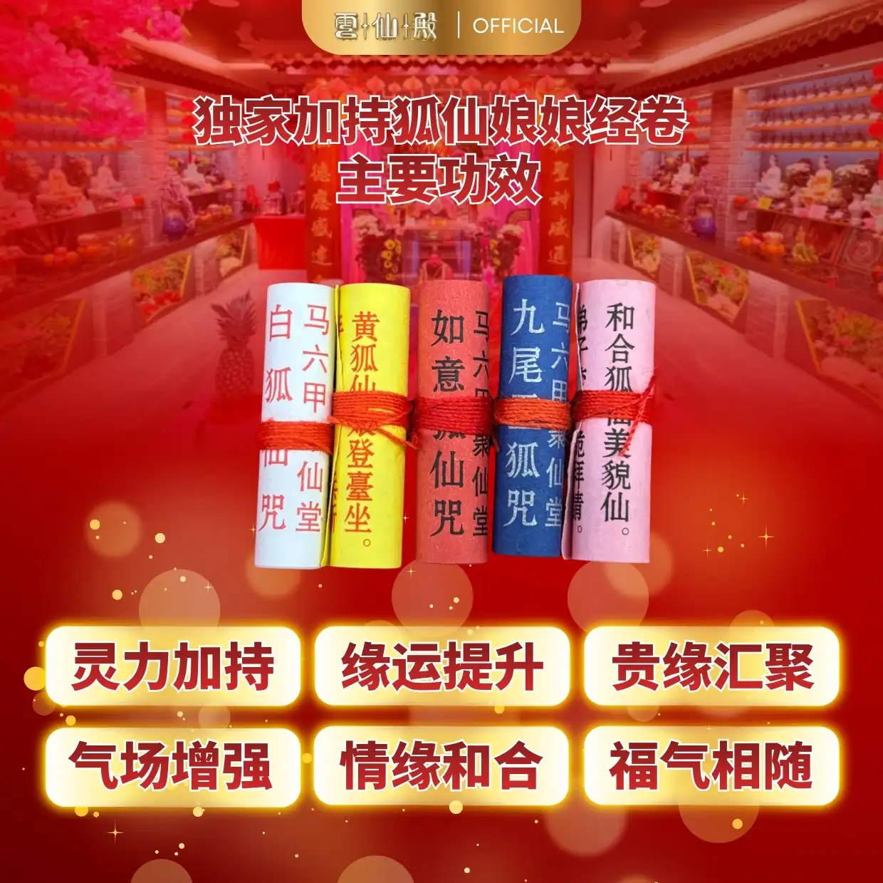 融合 狐仙娘娘加持寓意与如意经卷象征,代表祈福转运、人缘提升与心愿顺遂,适合供奉或随身安置,帮助稳定气场并增强好运能量 ✨