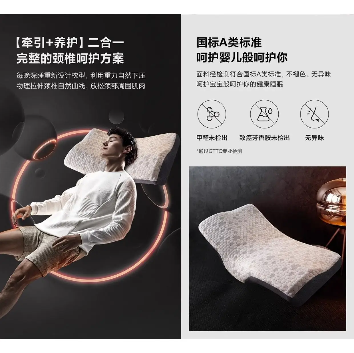 采用 石墨烯微电科技材料,帮助释放远红外能量,舒缓颈部压力,改善睡眠质量,让身体在睡眠中得到更好的放松与恢复 ✨