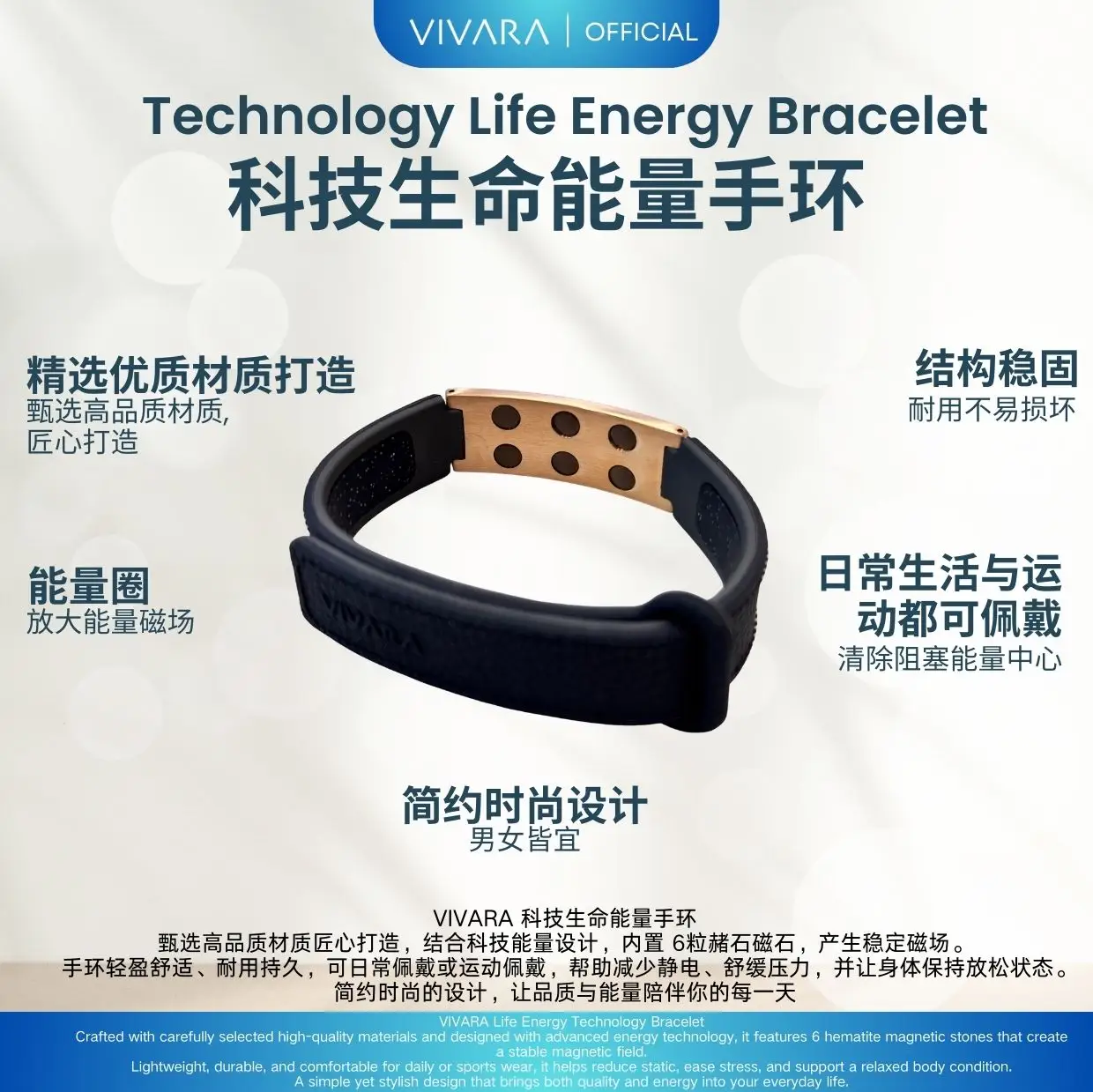 结合 科技能量设计与时尚手环外观,象征生命能量与平衡守护,适合日常佩戴,帮助提升整体气场与个人魅力 ✨