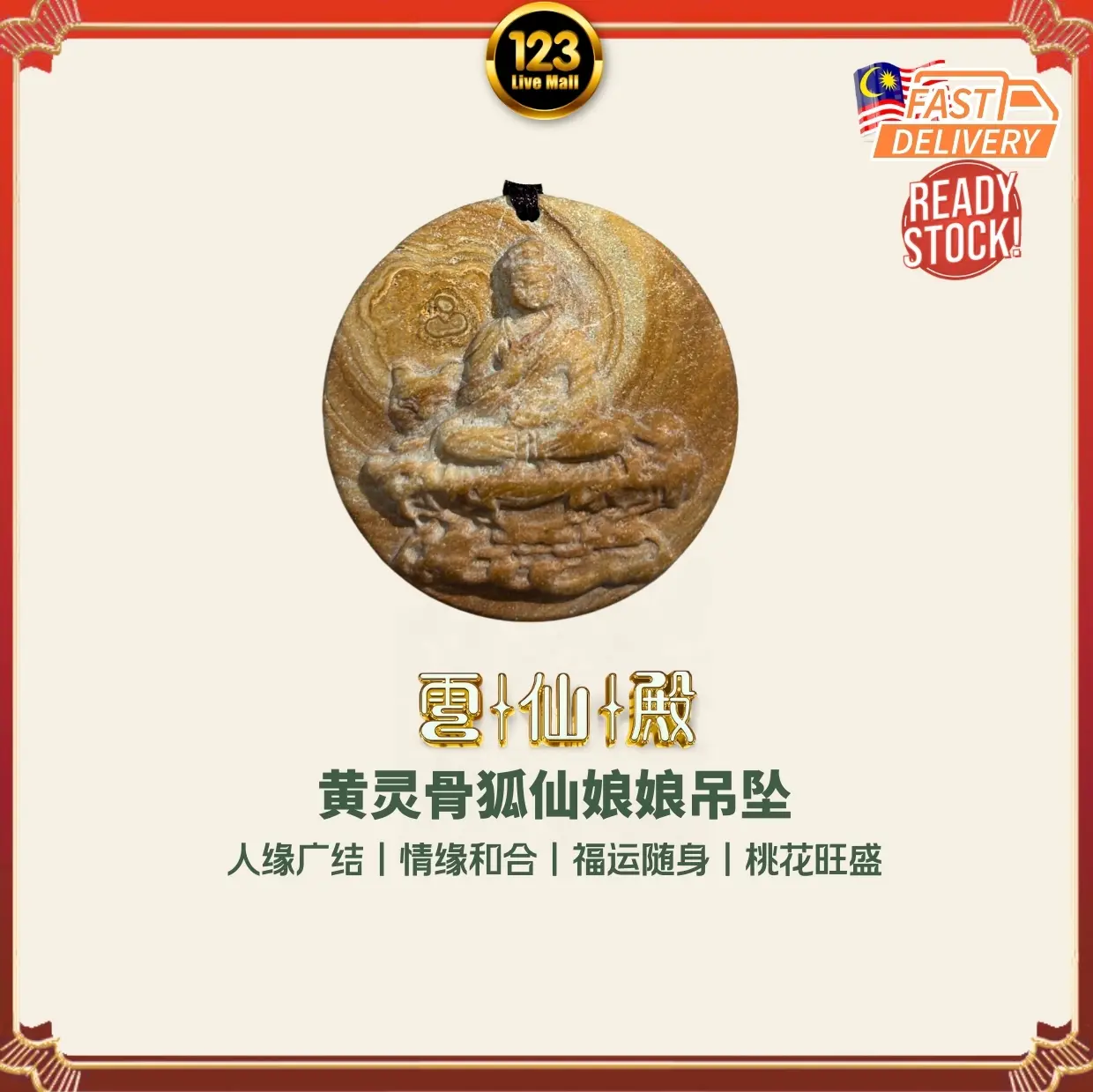 融合 黄灵骨能量与狐仙娘娘开运寓意,象征增强个人气场、提升人缘魅力与吸引贵人相助,适合随身佩戴,帮助稳定能量并提升整体运势 ✨